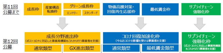 今回は「成長分野進出枠」「コロナ回復加速化枠」「サプライチェーン強靭化枠」の3つの枠に整理されました。